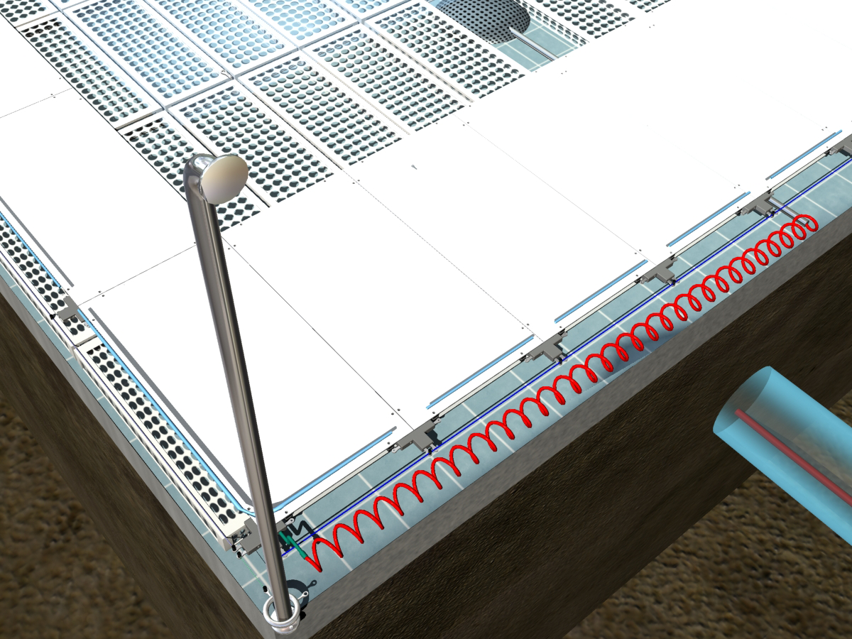 Heat loss in swimming pools is made up of evaporation (75%), radiation (20%) and convection (5%). The Floatek Tiling System is a surface insulation system. The Floatek system effects evaporation by acting as an insulator.